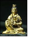 本作は、日本でよく知られる最もオーソドックスなお姿の観音菩薩像です。布をかぶった観音様のやさしげなお顔には、慈悲の仏様にふさわしい優美さがあります。小さいサイズながらも、衣服の文様や皺(シワ)のたるみまで、見事に表現されています。