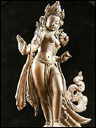 本作は、インド神話に登場するとても美しいお姿をした天女(アプサラス)仏像です。その美しさは神々ですら魅了し、天女の美しさ見たさにインドラ神は千眼を、シヴァ神は四面を生じさせたといわれています。